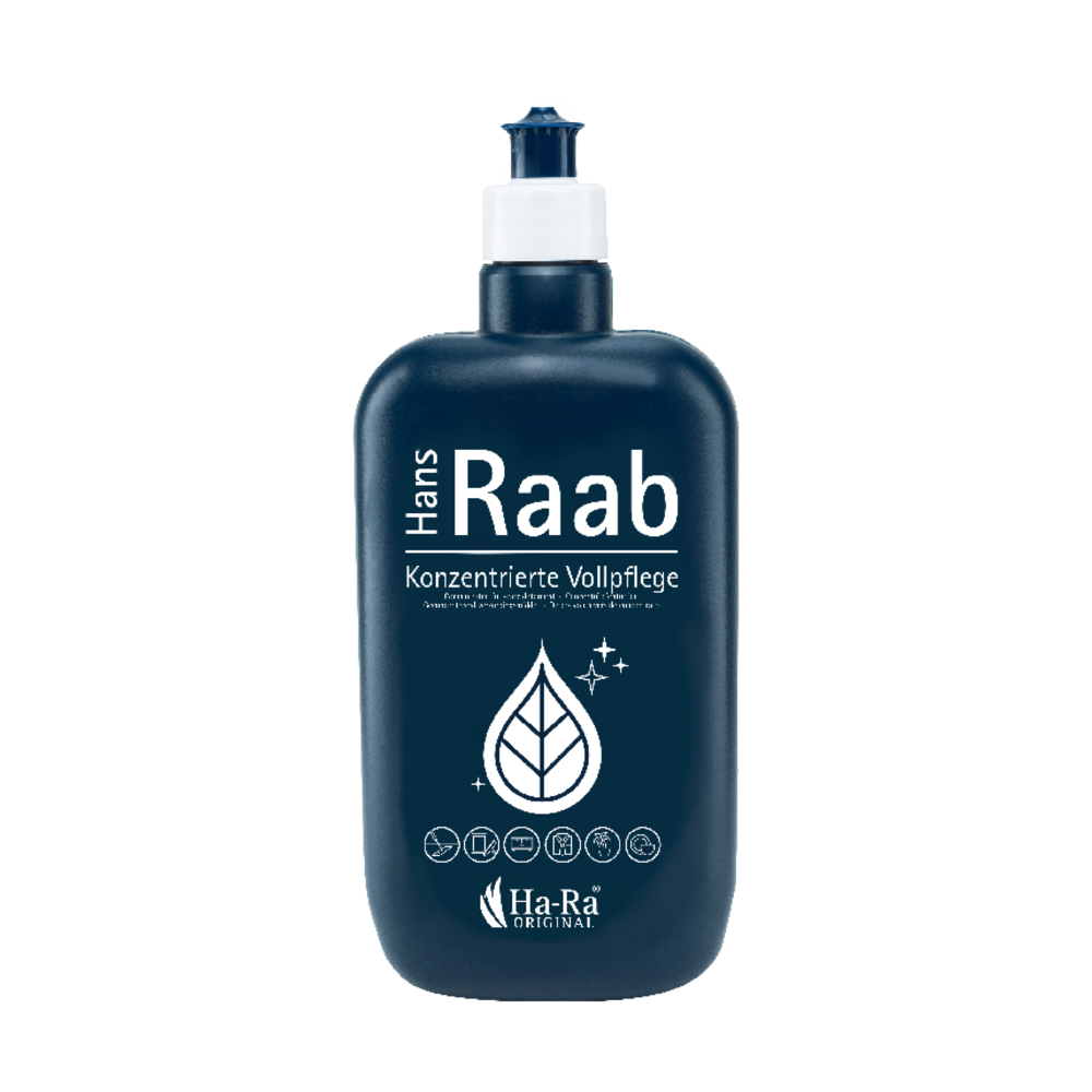 Ons Hans Raab verzorgingsmiddel is onze superstar omdat het de vezel tijdens het reinigen ondersteunt en tegelijkertijd de gereinigde oppervlakken verzorgt.